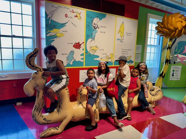 A visit to Springfield’s museum district included stops at the Dr. Seuss Museum, where children played in Seussian kitchens, met beloved characters, and explored vibrant exhibits. In the Fine Arts Museum, they interacted with Van Gogh-inspired displays, while the Natural History Museum brought dinosaurs to life and sparked curiosity through hands-on activities and giant bubble play in the outdoor grass area.