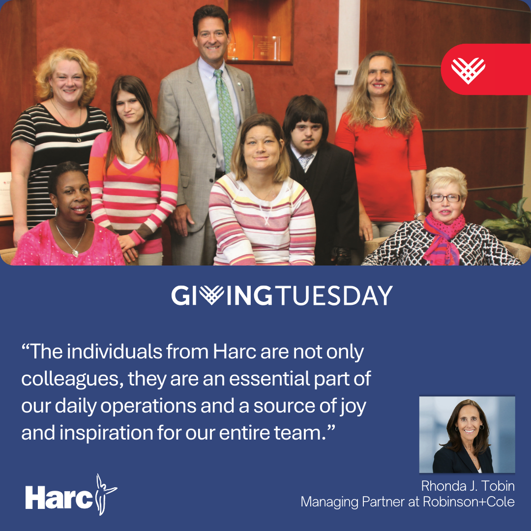 This GivingTuesday, we’re excited to introduce you to some of the remarkable employees in Harc’s Supported Employment Program, individuals like Tim and Adrienne, who are thriving in their roles at Robinson+Cole law firm. Partnerships like this are made possible because of you. Your generosity helps build inclusive workplaces and communities where everyone is valued, welcomed, and empowered to succeed.