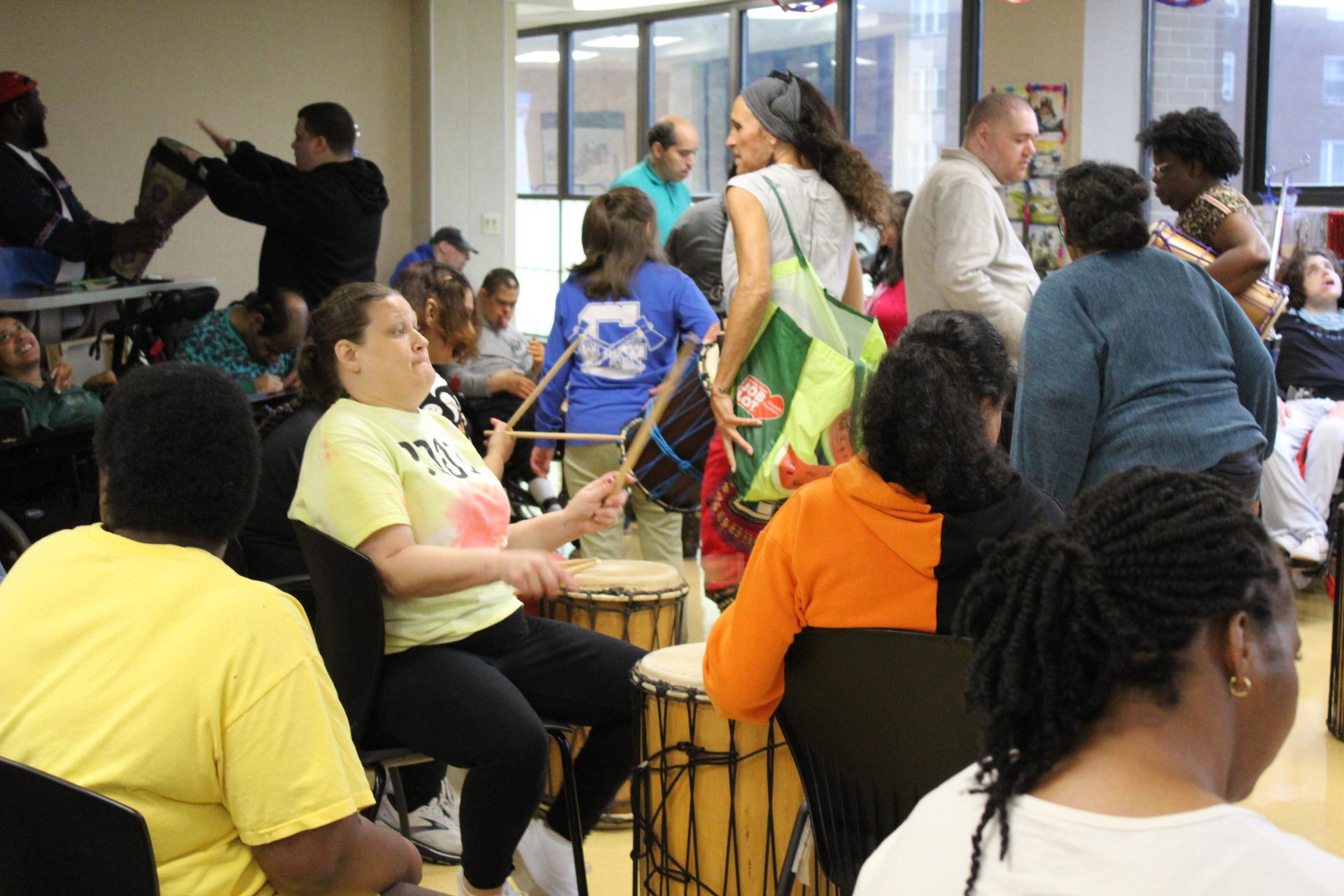 This month, Harc’s Bulova program experienced something truly special—our very first Therapeutic Drum Circle with Tara Murphy of Ammaya Dance & Drum! The session was filled with rhythm, energy, and joy as both our individuals and staff joined together to feel the groove and spirit of the music.