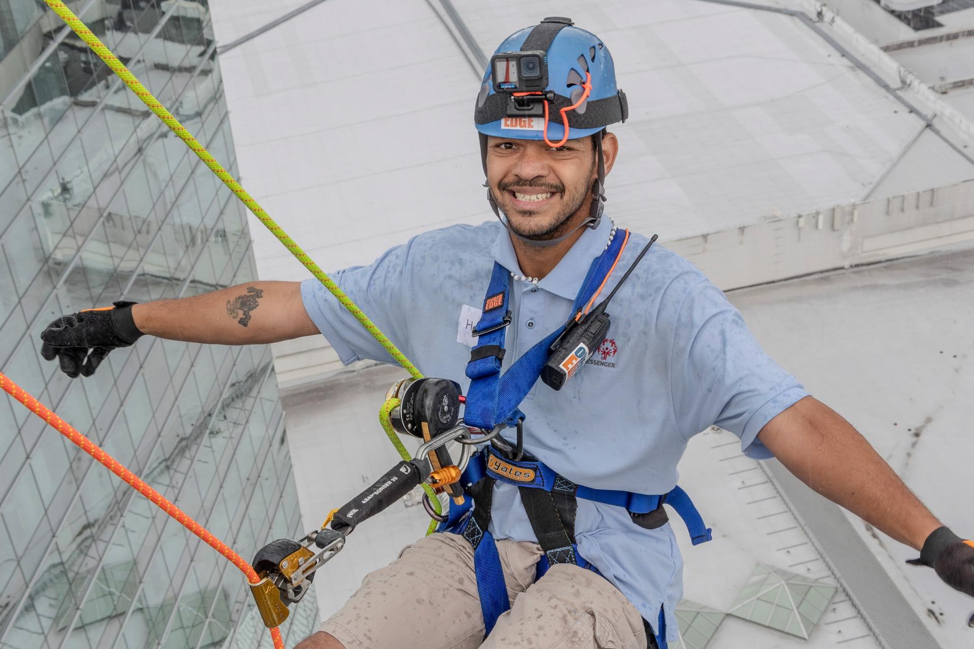 Hector’s first rappel took place in 2024. That experience was especially emotional, his aunt had passed away on the very same day. Carrying the cross she had given him, Hector initially wore it around his neck, but for safety reasons, he tucked it inside his shirt before his descent. He later shared that he felt his aunt’s presence with him, watching over him as he bravely made his way down the tower.